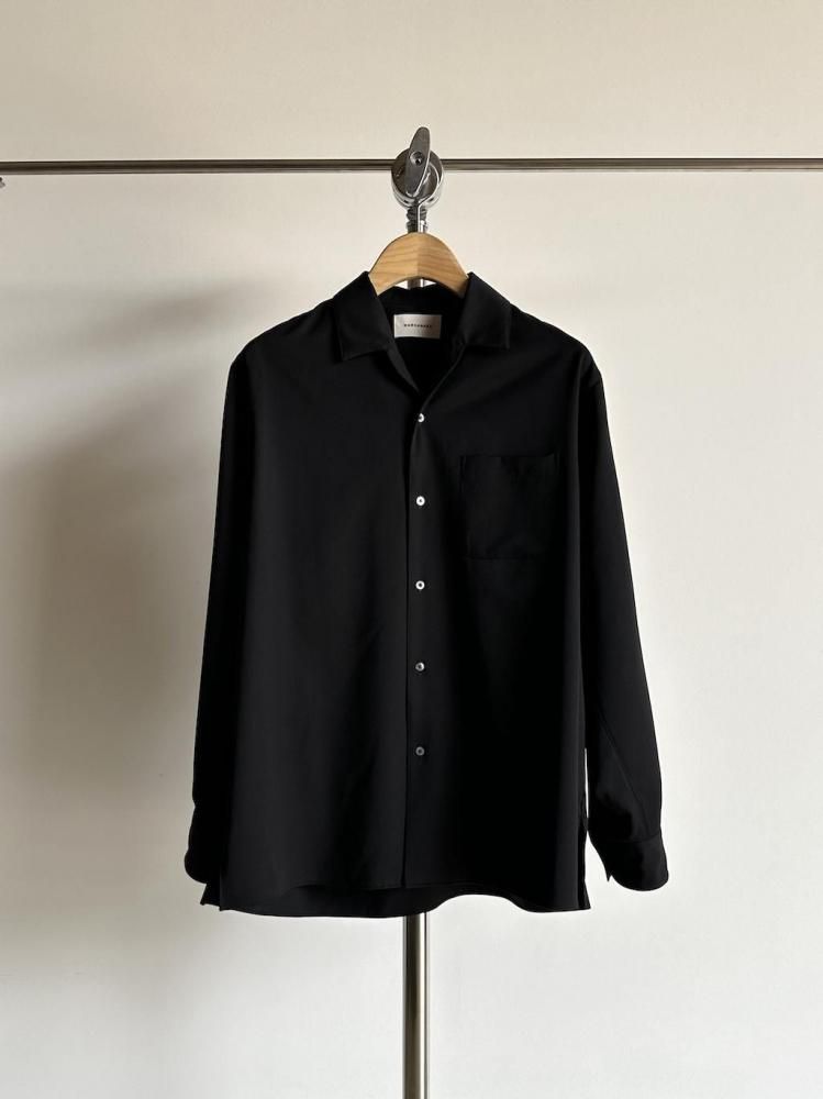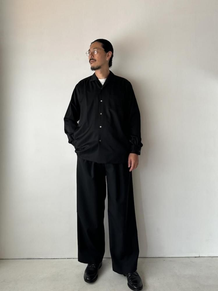 「Italian Open Collar Shirt」は、襟と前立て見返しの切り替えを排したイタリアンカラーを採用。カジュアルなオープンカラーに上品さとエレガンスを加えた1枚です。