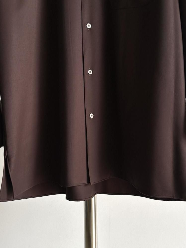 ウール素材の特性により、一日着用してもシワになりにくく、ついたシワもスチーマーで簡単にリセット可能。また、洗濯頻度を抑えられるため、汗ばむ季節からでも快適に着用できます。季節の変わり目にも対応できる、実用性と上質さを兼ね備えたシャツです。