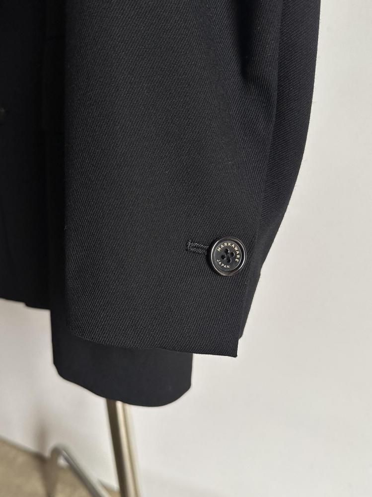 脇下から前身頃にかけてダーツを施すことで、羽織った際に美しいラインが際立ちます。前を閉じたスタイルはもちろん、開けて着用した際にも洒脱な印象に仕上がるデザインです。