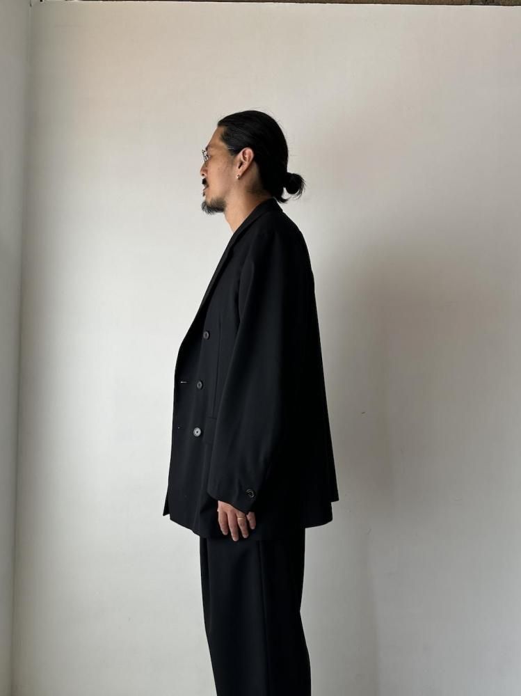 ゆとりのある身幅によるワイドなシルエットとコンパクトに設計された肩まわりが絶妙なバランスを生み出す「Double Breasted Comfort Jacket」。