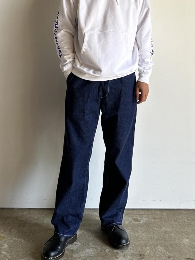 味わい深い経年変化が楽しめるライトオンスのデニム素材を使用。