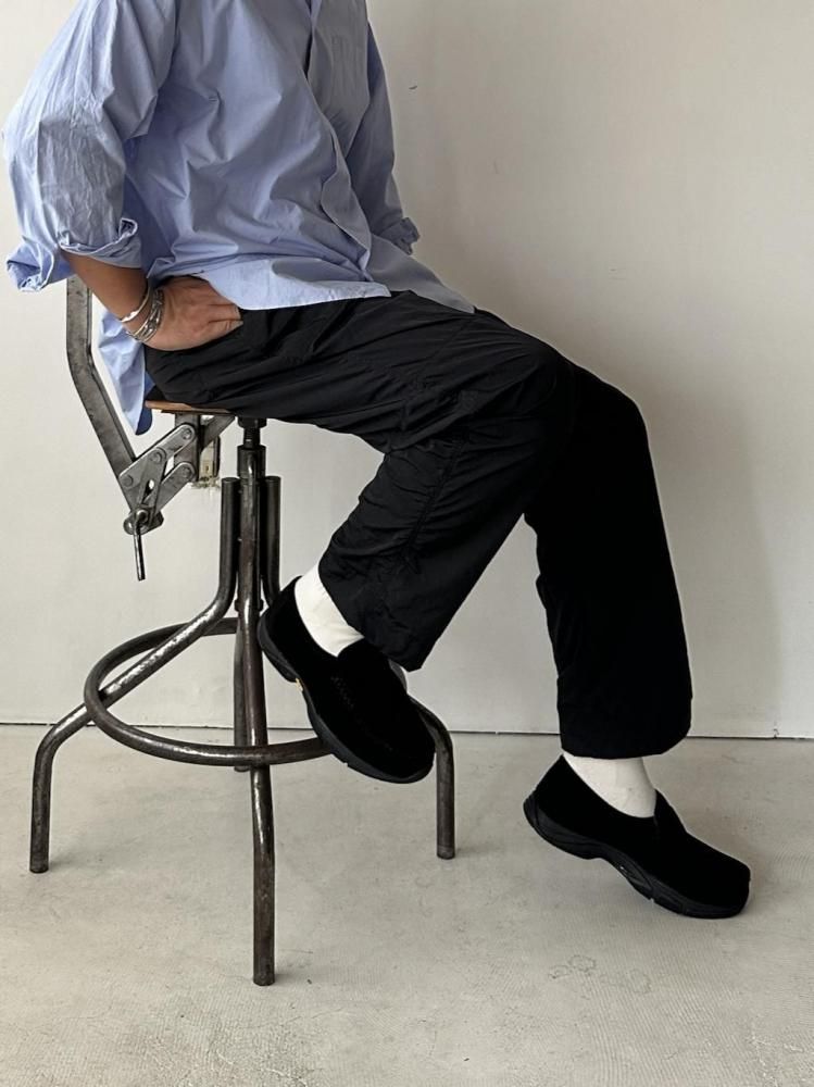 繊細で高密度で織り上げたイタリアのLIMONTA社のシャンブレーナイロンで製作したトラックパンツです。