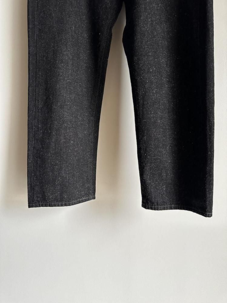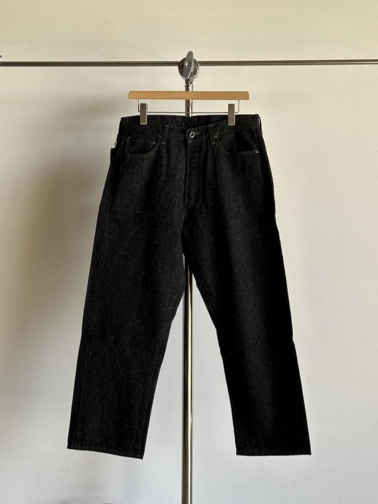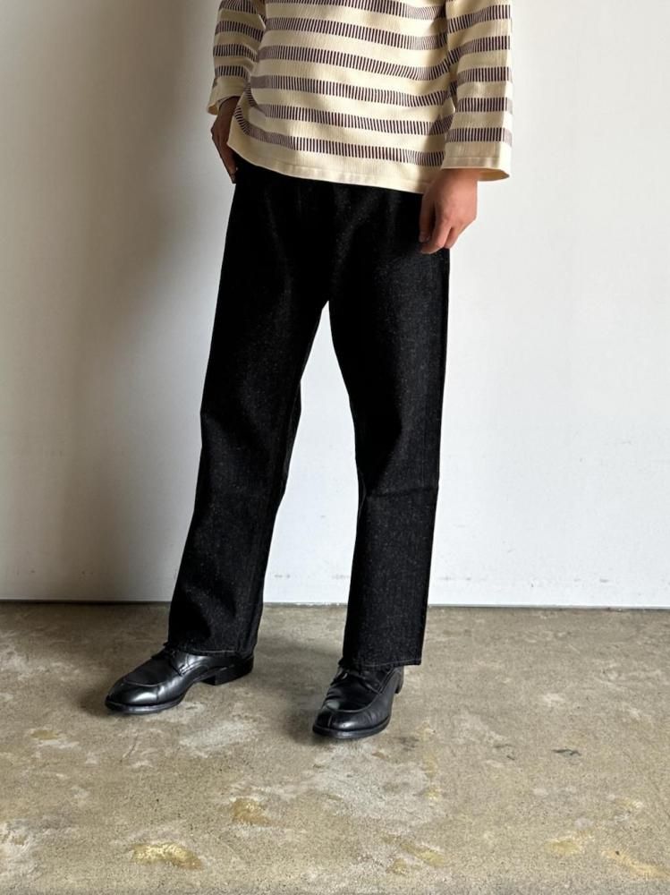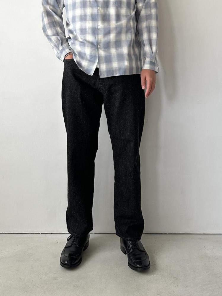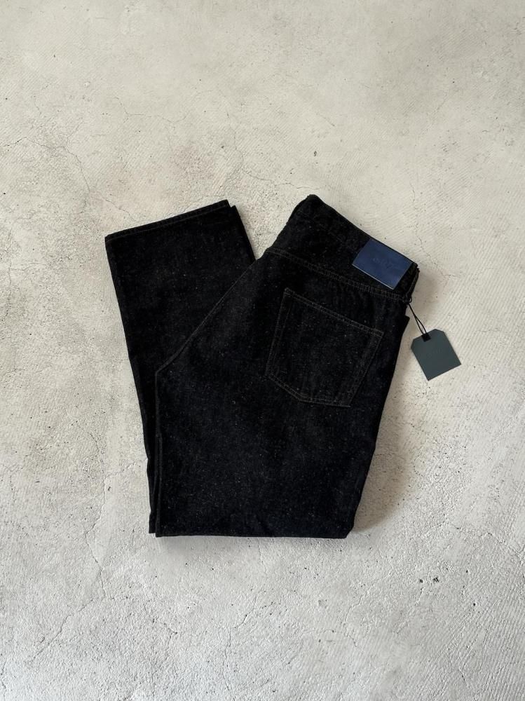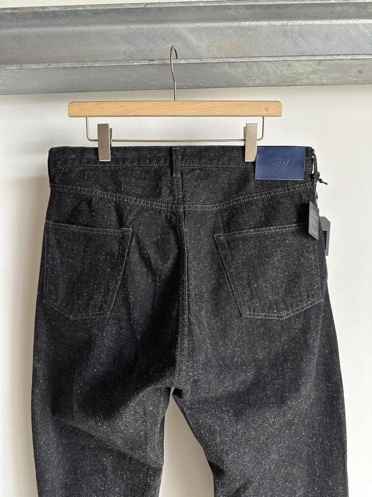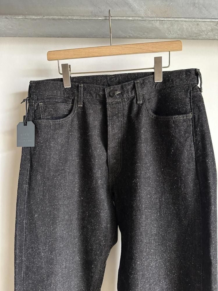 縦糸にロープ染を施し、緯糸に綿とヘンプの混紡糸を打ち込んだOUTILオリジナルのデニム生地のジーンズです。