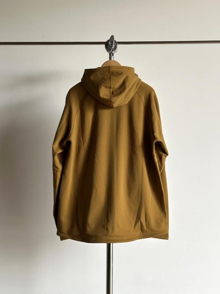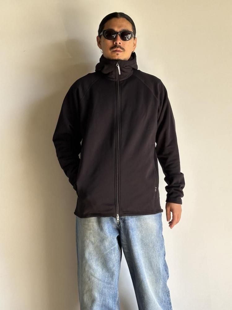 素材にはPolartec® Power Stretch® Proを採用。ポリエステルによる保温性と吸湿性、ナイロンによる強度、エラスタンによるストレッチ性という三重構造で、パフォーマンスと耐久性を兼ね備えています。なめらかで丈夫な表面はレイヤリングに最適で、長年のハードな使用にも耐えます。内側は起毛加工で肌触りが良く、優れた通気性と吸湿性を発揮。高めの襟、フィット感のあるフード、ジッパー付きハンドポケット、そしてフードや裾に隠された調整機能など、細部まで機能性を追求しています。