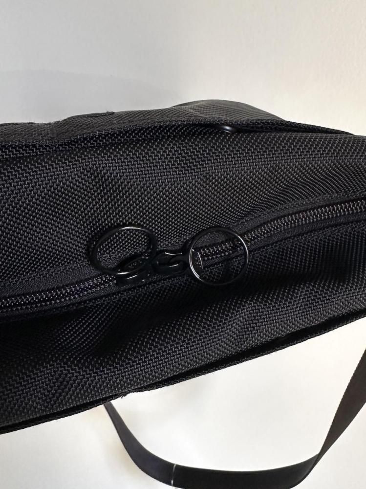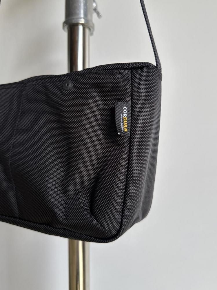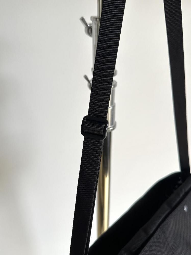 磨耗や外からの水に強いコーデュラナイロンを使い、ジッパーやリベット型ボタンも黒で統一。シャツやジャケットスタイルなど綺麗目なスタイルにもよく合うアイテムです。